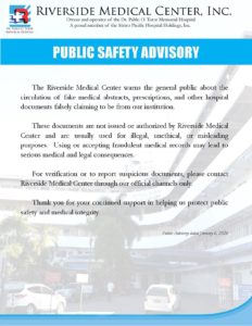 Press Release Advisory From Riverside Medical Center January 6, 2026 Tags: featured Share this...FacebookPinterestTwitterLinkedin