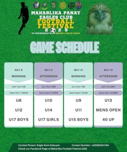 The Maharlika Panay Eagles Club, in partnership with the Rotary Club of Iloilo, will launch its 2025 Football Festival on Thursday, May 8, at 7:30 a.m. on the CPU Football Field in Jaro, Iloilo City. More than 150 teams from across the Visayas are competing in 12 age-group divisions for two days of matches designed to foster sportsmanship and community engagement.