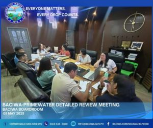 A “Detailed Review Meeting” between the Bacolod City Water District (BACIWA) ALand PrimeWater was conducted last week, with the presence of top management officials from both parties and the BACIWA Detailed Review Committee. The meeting was designed “to thoroughly assess the performance, compliance and service delivery under the joint venture agreement. Both sides engaged in open and constructive dialogue, reinforcing their shared commitment to improving water service for the people of Bacolod City,” a statement from BACIWA revealed.*