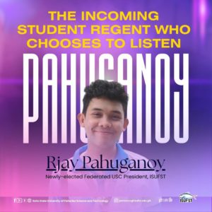 It wasn’t the grandeur of the oath-taking ceremony or the applause that echoed through the halls of ISUFST that marked the true beginning of Rjay Pahuganoy’s journey last May 20 at the Boardroom of ISUFST Main Campus. It was a quiet conviction, long nurtured by experience and a deep sense of purpose, that finally took shape when, in front of his fellow student leaders, he raised his hand and pledged to serve as the newly elected President of the Federated University Student Council (USC) and incoming Student Regent. For 21-year-old Rjay, this wasn’t a coronation. It was a call to action.