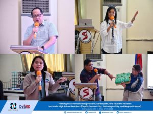 The Department of Science and Technology – Philippine Institute of Volcanology and Seismology (DOST-PHIVOLCS) is conducting another leg of training on Communicating Volcano, Earthquake, and Tsunami Hazards for Junior High School Teachers of DepEd Canlaon City, Guihulngan City, and Negros Oriental on May 27-29, 2025 at Southview Hotel in Dumaguete City.