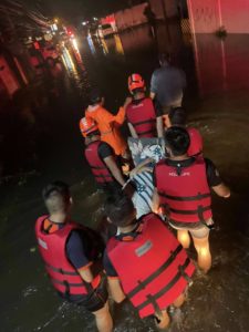 Bacolod City Fire Station responders rescued six nuns from rising floodwaters due to heavy rainfall at Purok Barracuda, Brgy. 1, Bacolod City past 2 a.m. of Saturday, July 12. The nuns of the Blessed Virgin Missionaries of Carmel were then transferred to the Señor Sto. Niño Home Incorporated in Taculing Bacolod via a private vehicle. The fire station responders also joined other agencies in responding to other calls for help.* (BFP-BFS photos)