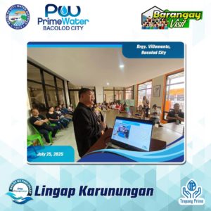 PrimeWater Bacolod City, in partnership with the Bacolod City Water District (BACIWA), led an Information, Education, and Communication (IEC) Campaign in Barangay Villamonte, Bacolod City, to strengthen public awareness and enhance community engagement, July 25.