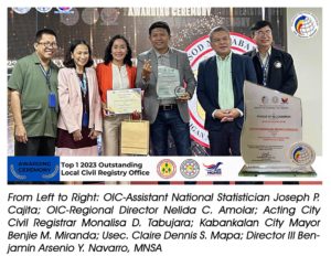 Under the leadership of Acting City Civil Registry Office Head Monalisa D. Tabujara and the people-centered administration of Mayor Benjie M. Miranda, the office has earned back – to – back national distinction – ranked Top 1 in the 2023 & 2024 Outstanding Local Registry Office in the Philippines – Super Extra Large Category awarded last October 09, 2024 and July 30, 2025 respectively.