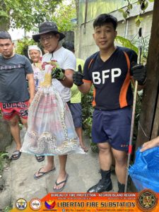 Personnel of the Bacolod City Fire Station’s Libertad Fire Sub-Station rescued a 2.4 meter reticulated python Wednesday morning in Malvar Cubay, Villamonte, Bacolod. It was immediately turned over to the DENR – PENRO Negros Occidental.* (BFP BC Libertad Sub-Station photos)