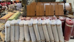 Eleven of the 12 expected association beneficiaries were present to receive the livelihood package. It included two sewing machines, one zigzagger machine, four rolls of fabric, scissors, and various sewing threads.
