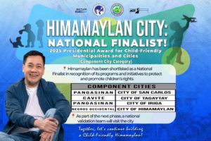Himamaylan City has been named a National Finalist for the 2025 Presidential Award for Child-Friendly Municipalities and Cities (Component City Category).