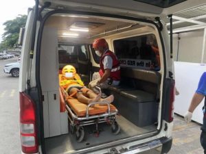 The well-trained Red Cross team assessed the student on-site, and stabilized her hip with triangular bandage while vital signs were being monitored. The team then safely transported her to the Bacolod Adventist Medical Center for further evaluation and management.