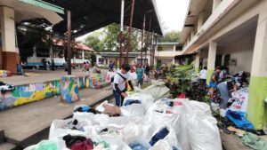 Personnel from the Public Affairs and Assistance Division, Department of Social Services and Development (DSSD), Bacolod Environment and Natural Resources Office, City Legal Office, City Cooperative and Livelihood Development Office, and the City Administrator’s Office, together with volunteers from various organizations, continue to repack and properly rebag the bulk of used clothing donations for fire-hit families in Barangay 27.